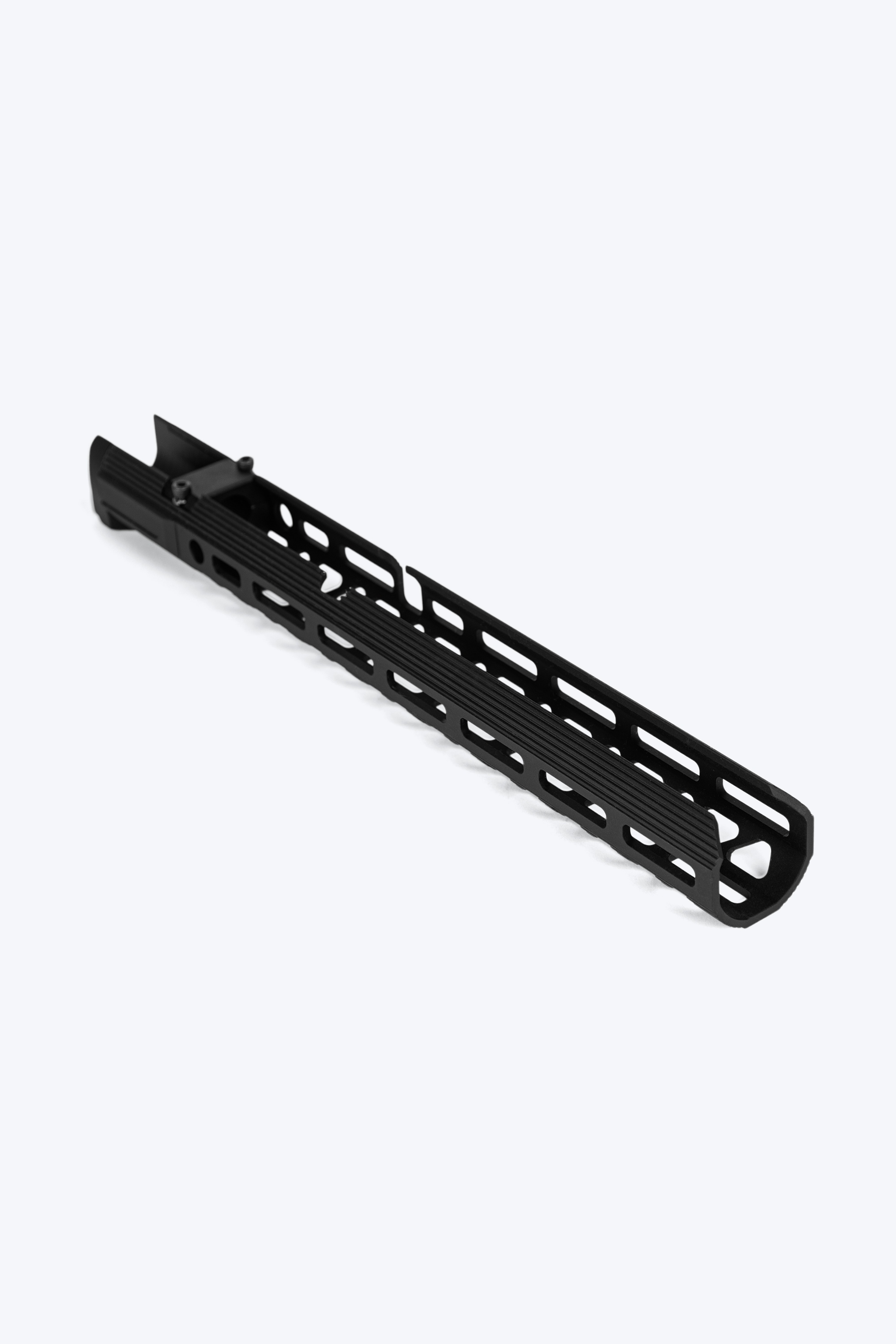 Цевьё выполнено из алюминиевого сплава методом фрезерования, после чего нанесено прочное анодирование.